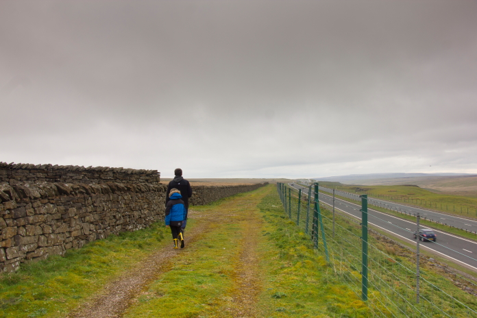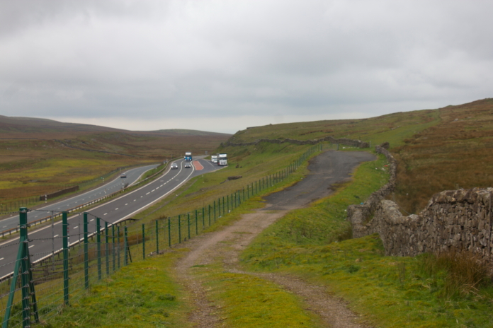 Above and below:-Setting off for Beldoo Moss from a large layby next to the very busy A66.