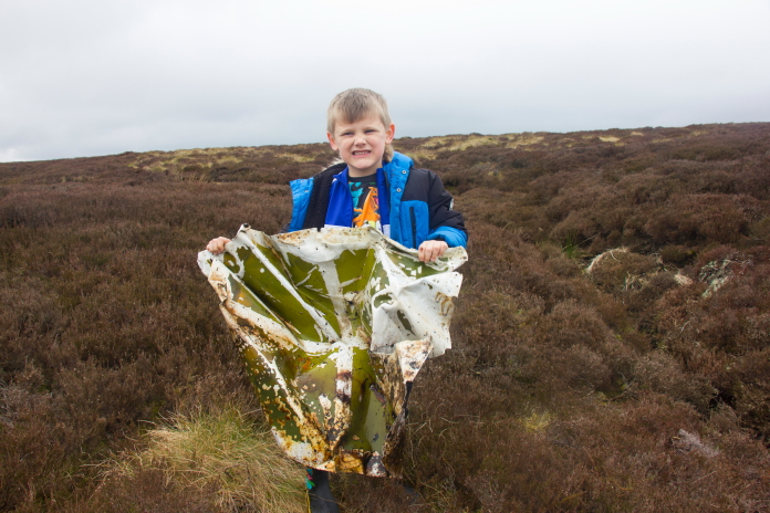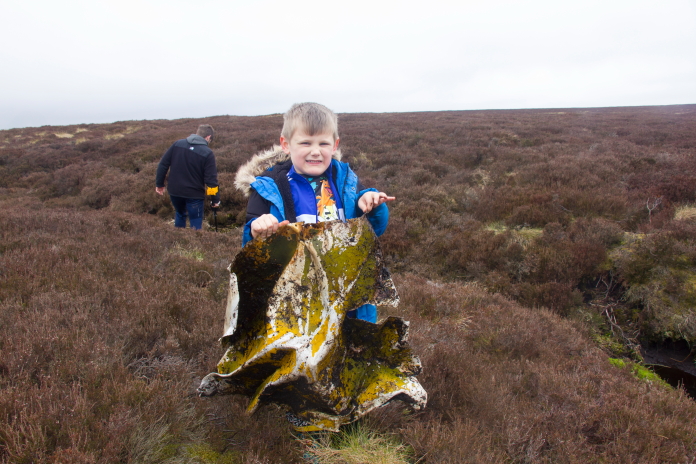 There was a grouse feeder nearby which was marked with a white pole so we borrowed that to prod in the muddy puddle(we did put it back where we found it). Theo was quite happy to stick his arm into the mud and he pulled out several fragments of the Botha. There was also what appeared to be a floorboard in the mud, we lay that to one side thinking someone had just used it to stop themselves sinking into the mud but it turns out it was a piece of the Botha's wooden floor.