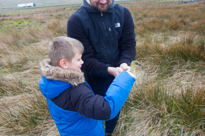 Theo's mood brightened up when we found a tiny baby bird beside the path. We had no idea what sort of bird it was but we left it where it was in the hope that it's parents were nearby. A bit further along the path we came across a load of baby Geese, they scattered in every direction apart from one which seemed to be quite happy for Theo to pet it. We had to move on quickly when the Parents turned up as they were understandably not happy with our presence.