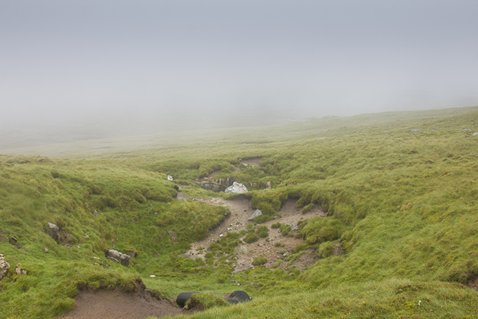 When I mentioned the ground was wet underfoot it was still easy going on a reasonably well trodden path, that is until I reached an area called Hanging Seal. The terrain around Hanging Seal was one wide and deep spaggy moss filled peat grough after another, and to make matters worse they were all flooded, which made them quite impassable. The solution was to make a slight diversion uphill to where the peat groughs were a lot narrower which allowed me to cross them without too much drama!