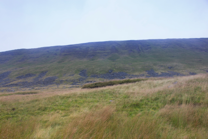 I parked the car beside the track which I was going to use to reach the third crashsite of the day, then walked up the road about 100m to where there was a wall which went across a field on the right, I followed the wall across some very boggy ground to the base of Whernside. I didn't know it at the time but if I'd walked back down the road for about half a kilometer there was another wall that had a nice little path beside it, that went all the way to the summit of Whernside; much easier going than the way I went, but as it isn't marked on the map I didn't know about it until I followed it all the way down to the road on the way back to the car.