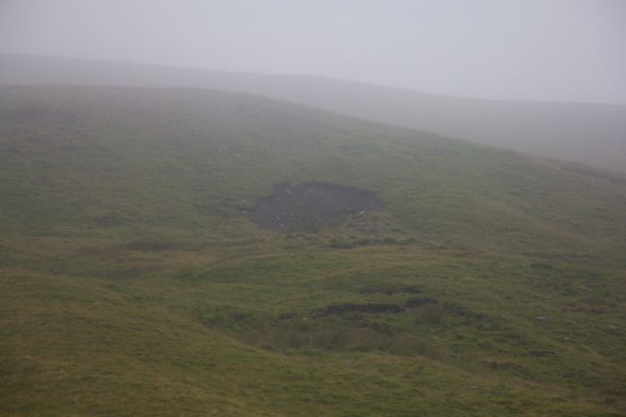 above and below:- Looking up to the impact scar from the peat grough containing the remains. Again going off earlier photos of this on the interweb it looks like there may have been a landslide that has covered most of the scar.