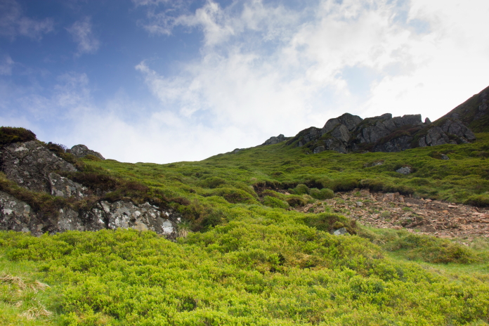 Arriving at the top of the cliffs on Bawhelp