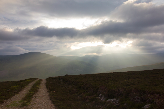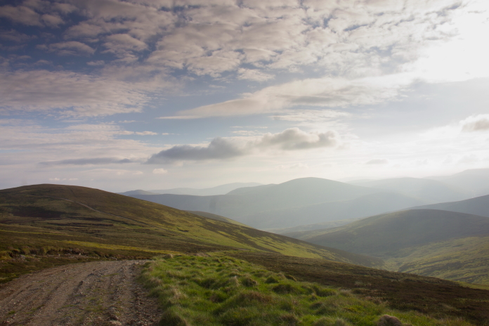 The track back to Glen Isla and my car, perhaps I'd better run! Luckily for me, just as I was setting off back along the landrover track I received a phone call from Heather to say their flight was delayed and they were now landing at 12 midnight, a bit more time but I was still gonna have to put a spurt on.