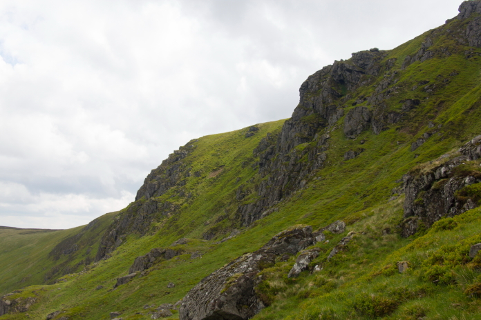 I first attempted to find this Hurricane wreckage on a quite long circular walk I did, when I had already visited a HP Halifax and an AW Whitley in Glen Isla. Although I made it to the top of the cliffs on which the wreckage is located I ran out of time to search for it*.
