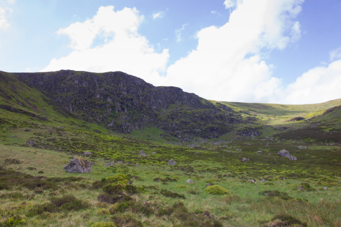 View down Glen Prosen from above the crashsite, the Hurricane most probably flew up here towards the camera.