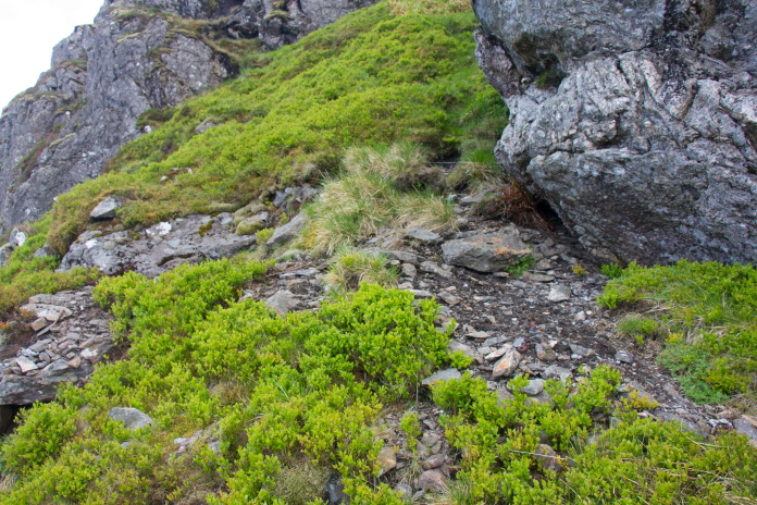 I tried to exit via the grassy slope seen going uphill here but it became a little too steep around the corner forcing me to backtrack the way I came.