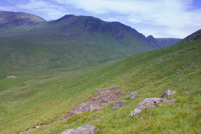 Climbing up the steep slope past the Scar made by the