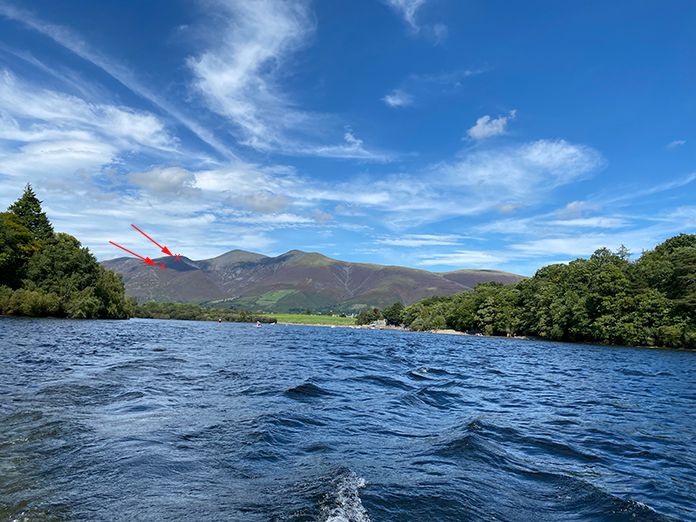 Above and next two photos.:- Two more views of Derwent Water taken from our ascent of Skiddaw, I've also marked where these were taken from on the Motor Boat Photo below.