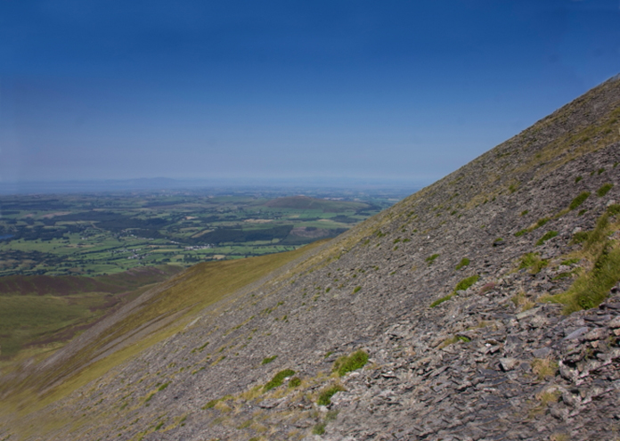 The area on Skiddaw where the B17 crashed, the main area of wreckage being about dead centre of the photo, Skiddaw summit can be seen in the distance on the skyline right of centre.