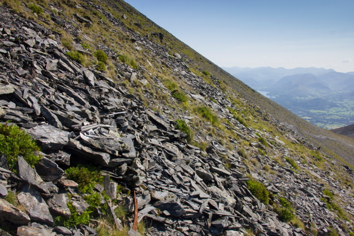Although there is nothing immediately visible in the photo here, this is what we believed to be the main site as there were hundreds of small parts scattered in the scree. More crashsite photos. I knew that a Vickers Wellington had crashed a mile or so north of Skiddaw, I had considered going to look for that after finding the B17 but eventually decided to make a separate walk for that one instead of having to rush around on this day. What I failed to realise at the time was that there was a second Wellington crashsite near Skiddaw, and we had passed within half a mile of it on the way out and on the way back.